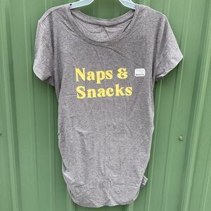 5 pocket maternity skinny jeans and super soft short Sleeve Shirt with elastic ruched sides for comfort.