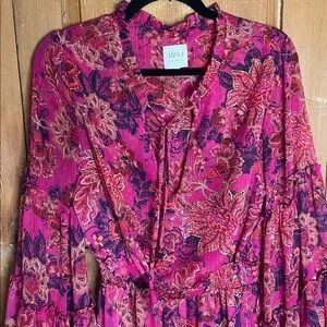 Misa Los Angeles Leeva fushia batik floral mini dress NWOT