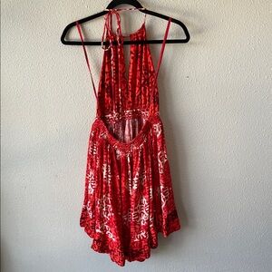 Free People Beach Day Mini Dress Keyhole Front Bare Back Red Geo Print Small