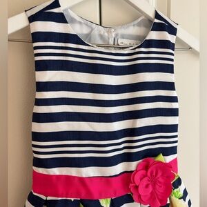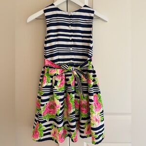 Jona Michelle Navy Striped Floral Sleeveless Lined Party Dress, Girls Size 7
