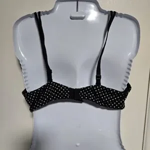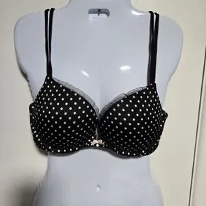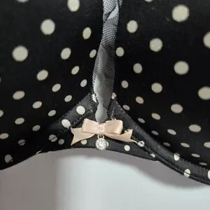 Victoria's Secret Black and White Polka Dot Bra, faux diamond, lace.