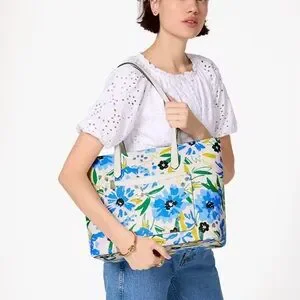 Kate Spade Floral Tote Bag Set in Blue and Cream