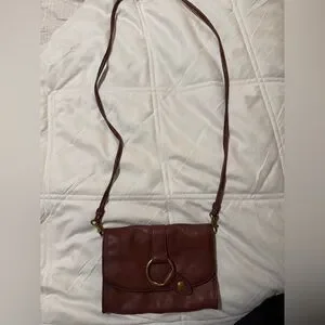 Frye Brown Leather Crossbody Bag with Gold Ring