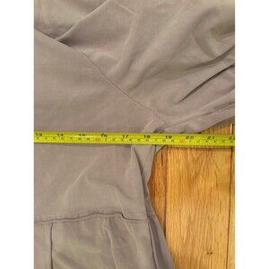 See picture for pit to pit measurement. I’m a true large and this fits me good. The color is hard to describe, but it’s more of a light brown or mauve to me but please see pictures for better description.