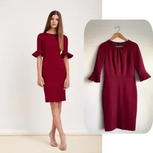 Stylish wine-colored dress with flared sleeves. Perfect for elegant occasions. Worn on TV ! NWOT