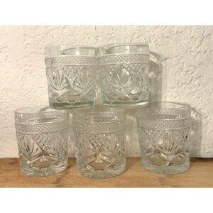 Vintage Crystal Whiskey Glasses Set Of 6 Diamond Pattern 3.5" Tall Made In China