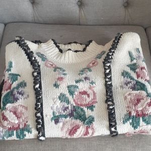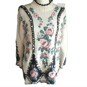 Vtg Rebecca Stone knitted cozy pullover crewneck embroidery sweater size large,preowned great preloved condition from pet and smoke free home.
