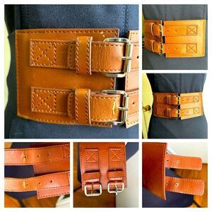 This dress has been hanging in my closet in a garment bag for a while. The belt has a few cracks. Please review the photos. When the belt is looped, you cannot see them.