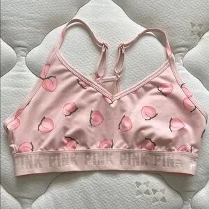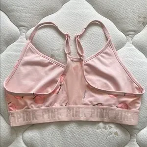One VS PINK peach print sports bra. Size tag and padding have been removed. Fits like a size medium.