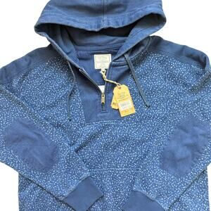 Highlight the speckled design, elbow patches, drawstring hem, and high-quality material. Mention that it is brand new with tags, making it an ideal gift or wardrobe addition.