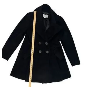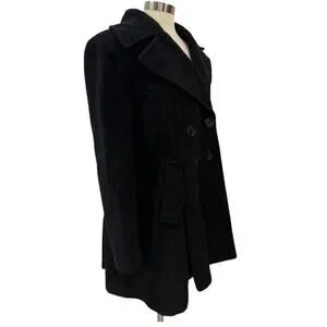 BCBGeneration Classic Black Wool Blend Winter Pea Coat SZ LARGE