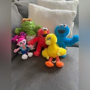 Sesame Street Stuffed Animals Set - Red, Yellow, Blue, Green, Pink