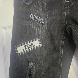These black skinny jeans are designed to offer a sleek and modern silhouette, making them a versatile addition to any wardrobe. The patches add a stylish viewpoint. Crafted from premium denim, they ensure both comfort and durability.