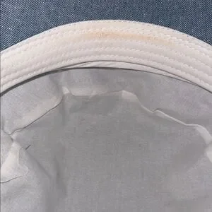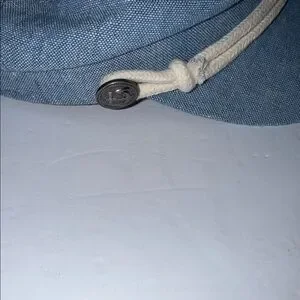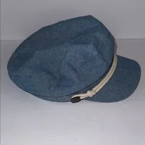 Stylish blue denim cap featuring a cream accent rope. Perfect for adding a casual touch to any outfit.
