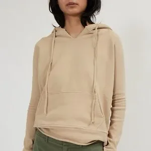 The Janie Hoodie has a relaxed body, and slim, long, ribbed sleeves which creates a willowy shaped sweatshirt and allows for the hoodie to be layered under a blazer. We like the comfort of the v-neck and drawstring details.