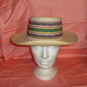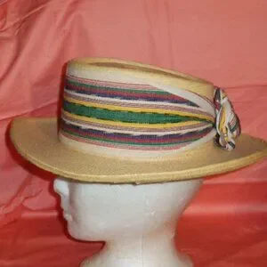 REMOVABLE STRIPED SCARF WITH FAUX PEARL HAT PINS.[SEE PICS].