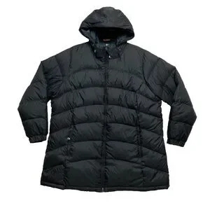 VINTAGE LL Bean Coat Womens 2X Black Goose Down Fill Puffer Hood Warm Jacket