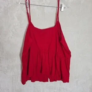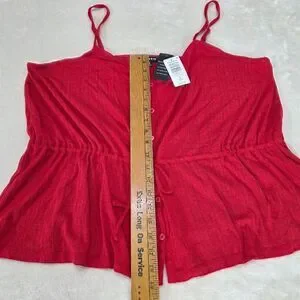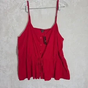 Torrid Pointelle V Neck Cinched Waist Peplum Tank Adrenaline Rush Red 2X (18-20)