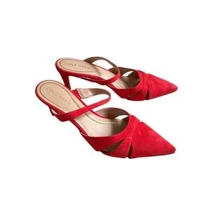 A pointed-toe slip-on style with a 2-1/2" stiletto heel and cutouts at the vamp with an instep strap