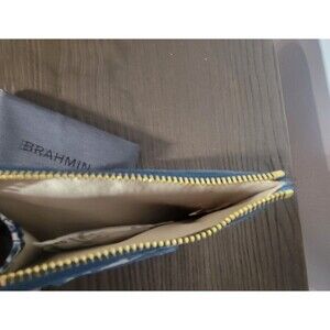 The NWT Brahmin Melbourne Collection Blue Filigree Lennon ID Wallet is a stylish and versatile accessory for women. Made of leather with a satin fabric lining, this mini wallet features a rectangular shape with a zip closure and gold hardware accents. The exterior is adorned with a beautiful blue filigree design, while the interior is lined with ivory fabric. Ideal for various occasions including parties, casual outings, formal events, and business meetings, this wallet from the Brahmin brand combines fashion and functionality in one chic piece.