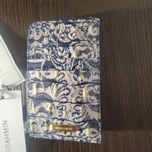 NWT Brahmin Melbourne Collection Blue Filigree Lennon ID Wallet New