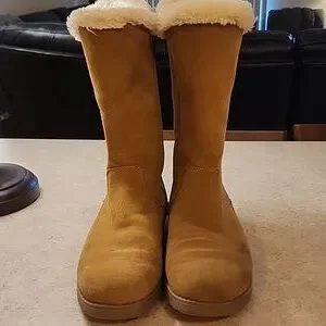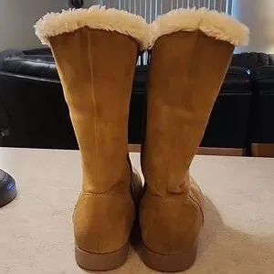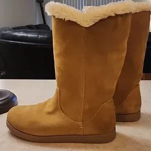 These Universal Thread Charleigh Boots feature a suede upper and a faux shearling lining. They are size 11 and are a tan color. These are great for everyday wear and give off a comfortable warmth. These were used just a few times and are still in great condition. Some splotches can be seen on the suede. Feel free to send me some offers! ๐๐๐