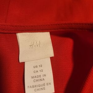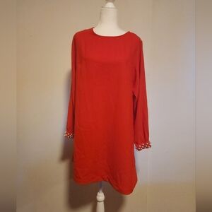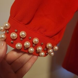 Bright Red H&M Shift Dress With Pearl Embellished Long Sleeves 12 EUC