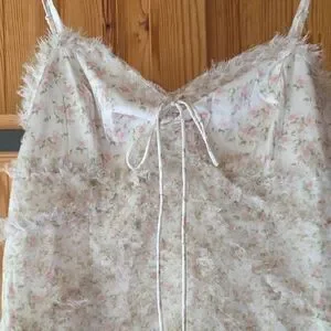 A super cute slip dress design featuring dainty floral patterns, and lovely ruffle accents! Perfect for all the upcoming fun this summer. Lined; side zipper fastening and adjustable shoulder straps.