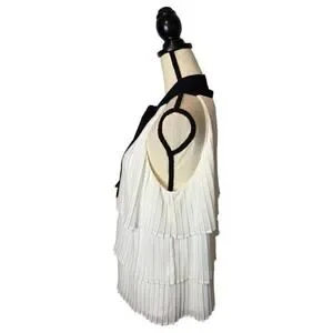White House Black Market Bow-Neck Pleated Blouse Womens Size 12 White/Black