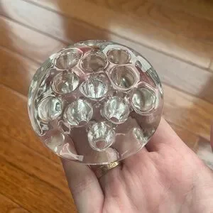 Set of two clear glass flower frogs. Perfect for floral arrangements. roughly 3 inches wide. 11 holes. set of 2