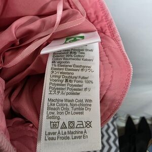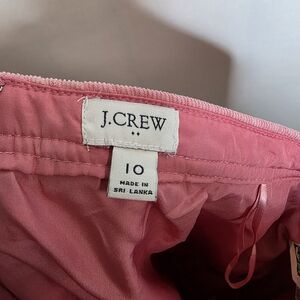 The product is a J. Crew Women's Pink Corduroy Knee Length Skirt in size 10. This solid pink skirt features a zip closure, making it easy to put on and take off. It is made of a comfortable cotton blend corduroy fabric, with a straight and pencil style that is perfect for a casual occasion. The skirt is lined for added comfort and comes from the reputable brand J.CREW, known for its quality and stylish clothing items.