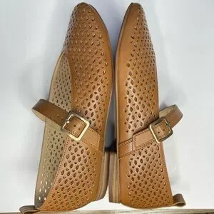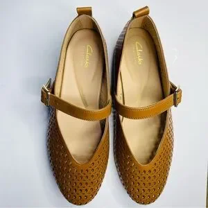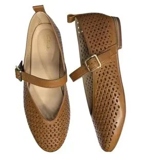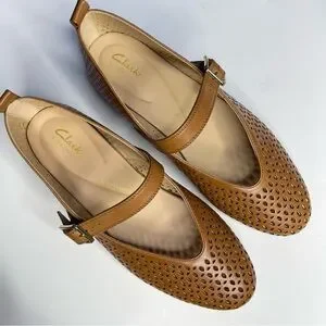 Clarks Women's Fawna Jane Tan Leather Perforated Flats size 9.5 New