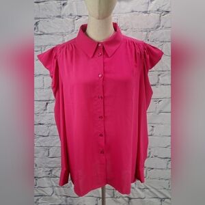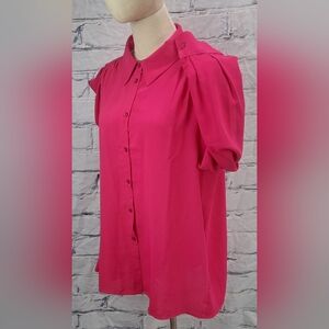 Via Bovio Women's Top Blouse Pink Ruffled Shoulders made in Italy XL