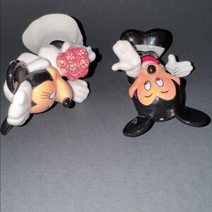 Adorable, Mickey and Minnie are dressed in their finest to get married, holding their hands and smiling big!