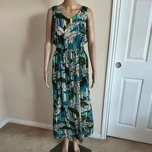 NWT Apt. 9 Striped Floral Maxi Dress - Green and Blue Size Small