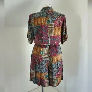 80s 90s Vintage Colorful Patchwork Pattern Romper size L-XL
