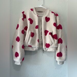 Charming puff jacket with pink heart design. Soft and warm for women, ideal para esté invierno☃️🎄Eye is a little unstitched from a pocket, see the photo. The rest is very good👌🏻I accept offers!!