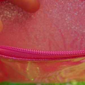 -one pink glittery zippered pencil pouch/makeup bag with the words "This girl is on fire" in white (7" x 5.5")