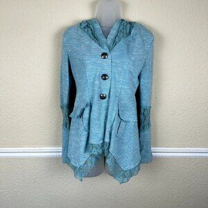 Nick & Mo Anthropologie Blue Jacket SZ Small Cottagecore Handkerchief Lace Hood