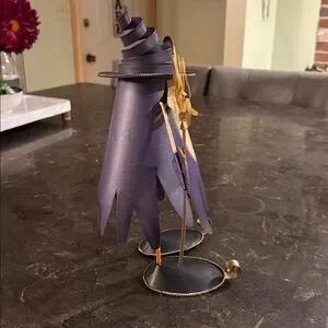 Charming purple witch figurine with a crescent moon hat and broomstick. Features orange and black accents. Has a dot in snd bounces. Good used condition.