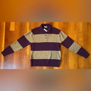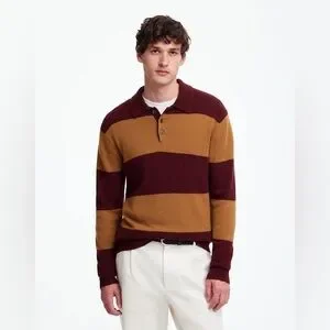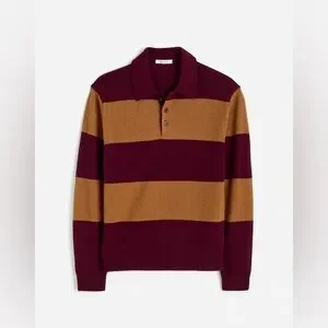 NWT Madewell Rugby-Stripe Sweater Polo Wool & Cashmere - Tan & burgundy Medium