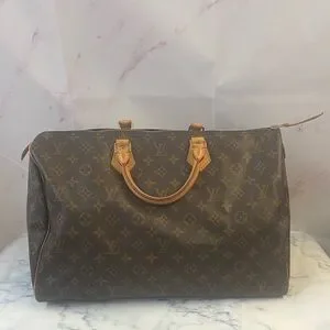 Elegant Louis Vuitton travel bag. Iconic monogram pattern. Durable leather handles. (H6) (H7)