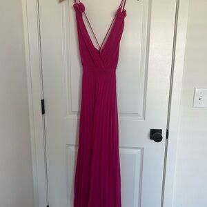 Zara Fuchsia Pleated Flower Maxi Dress Small
