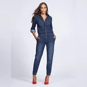 Chic denim jumpsuit with front zipper. Perfect for casual outings.