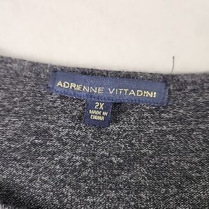 Adrienne Vittadini 2XL Grey Crystal Studded Round Neck Sweater Gathered Sleeve