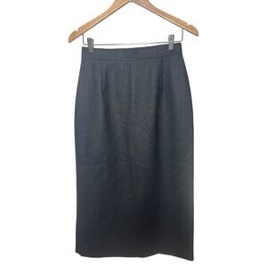 Lauren Matthews Skirt VTG 90s Midi Charcoal Gray Wool Back Slit Office Career