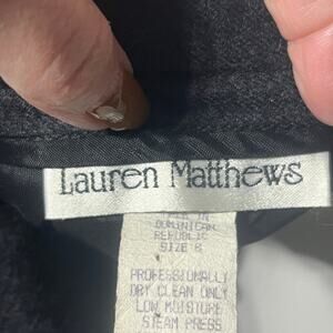 Lauren Matthews Skirt VTG 90s Midi Charcoal Gray Wool Back Slit Office Career 8