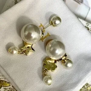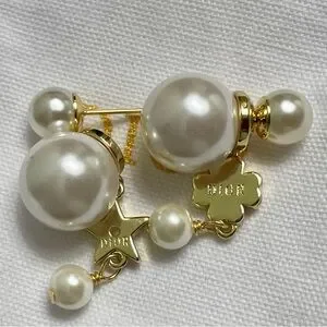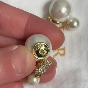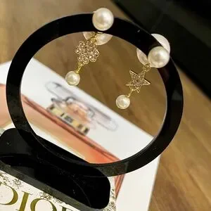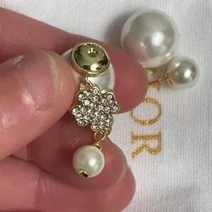 Chic Dior earrings with gold and white crystal details. Features a delicate floral motif.
