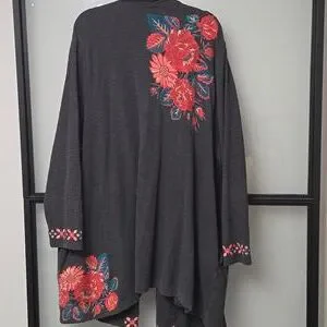 J.JILL EMBROIDERED GRAY CARDIGAN. SZ 4X