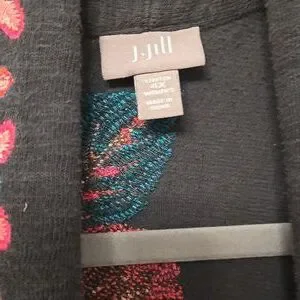 J.JILL GORGEOUS EMBROIDERED GRAY CARDIGAN WITH POCKETS